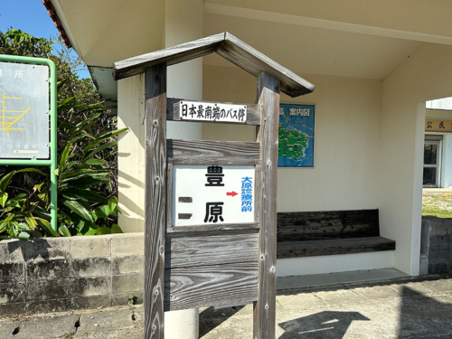 この豊原バス停は日本最南端のバス停で、木製のバス停にも「日本最南端のバス停」と書かれてます。