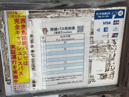 西表島のバスは完全キャッシュレスで、クレジットカードをタッチして支払う方式。