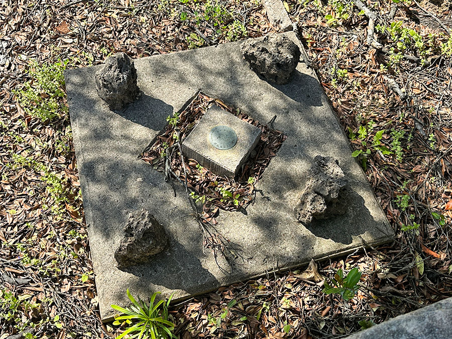 勝手に敷地内には入れないので隣の道路から見ると、水準点の標石が見える。