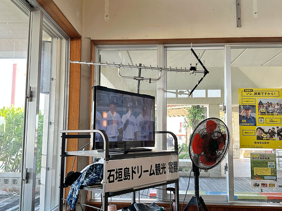待合室にはテレビが置いてあり、ちょうどセンバツ高校野球の試合中継が流れてましたが、テレビの横に八木式アンテナが立ててあるじゃないか!