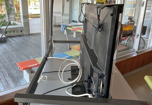 もしかして屋内のこのアンテナで受信してるの?と思い、テレビの裏の配線を見ると、しっかり八木式アンテナから直接テレビにつながってました。