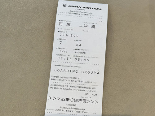 まずは石垣8:55発、JTA600便で那覇へ。