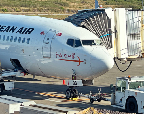 スポットにはJTAのB737-800、JA08RKが出発準備中。