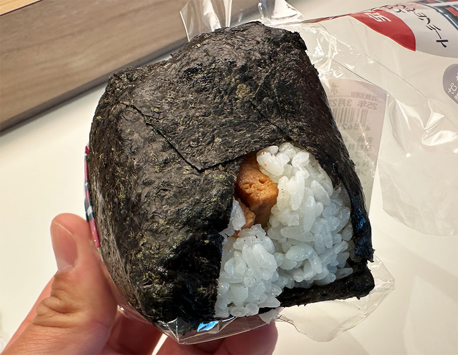 口を大きく開けないと食べられないおにぎりは、食べ応え満点。