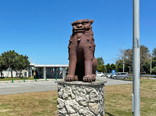 みやこ下地島空港へ通じている道路の両側には、沖縄らしくシーサーが鎮座。