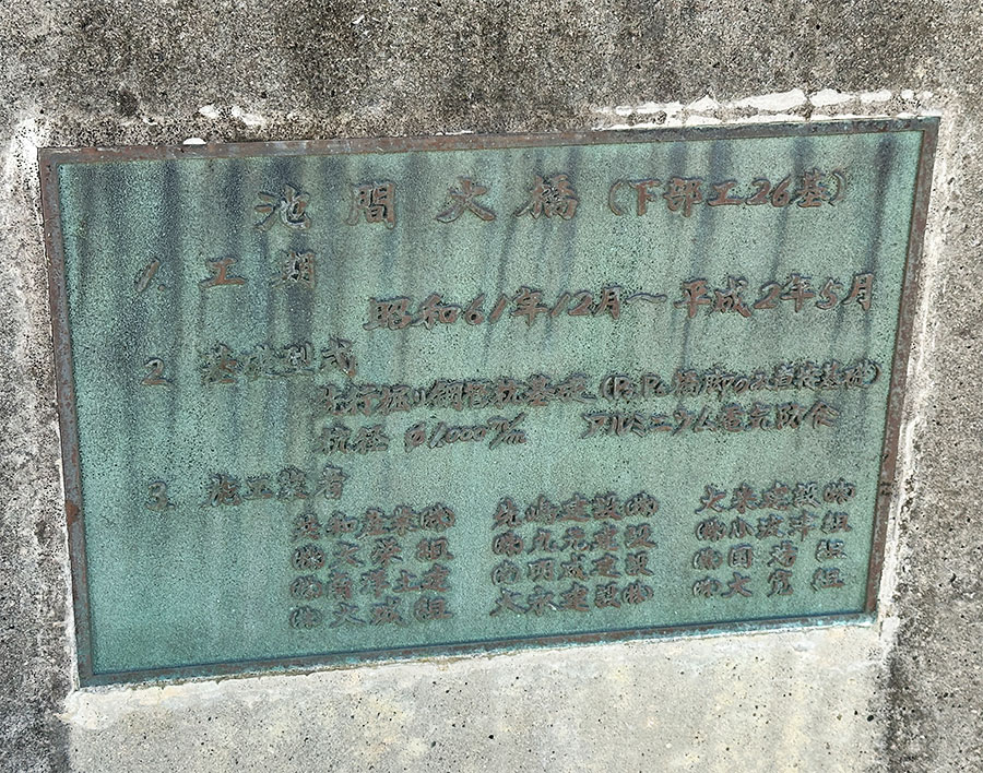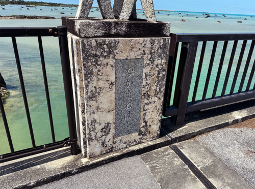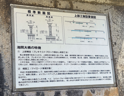 池間大橋の建設方法などの説明や銘板も。