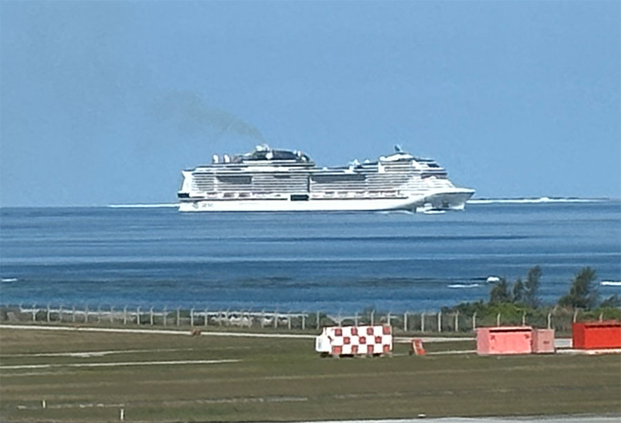 前日に石垣島に停泊していたクルーズ船「MSCベリッシマ」が沖縄本島に。