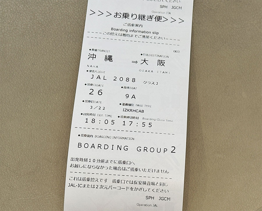 大阪へは石垣島からの乗り継ぎ2便目での搭乗。