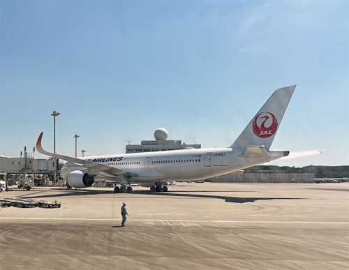 少し早めにラウンジを出て搭乗口へ行くと、A350-900、JA16XJが出発準備中。