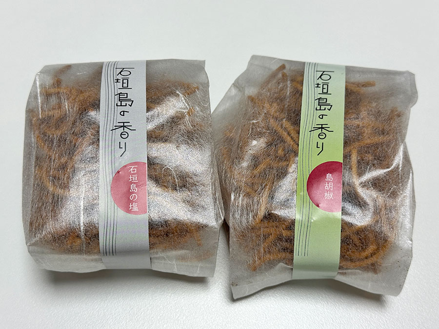 石垣島の塩、島胡椒、ラー油の3種類の味がありましたが、今回はラー油はパスして2種類だけ買うことに。