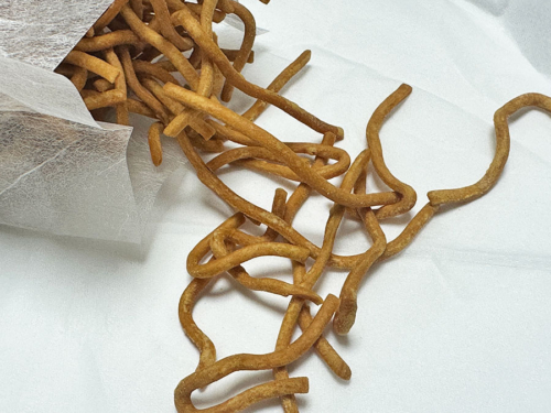 今はうどんやパスタなど麺をフライにしたかりんとうはいくつもありますが、この八重山そばのかりんとうは一番小麦の味を感じる。