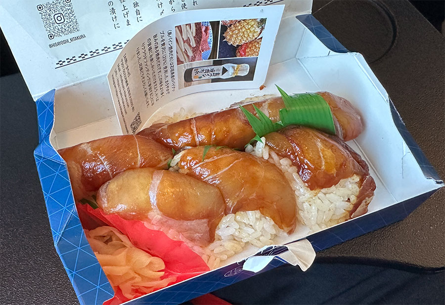 今回買ったのは、ミーバイの漬けにぎり。6貫入り税込1,440円也。
