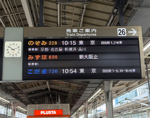 新大阪から新幹線で東京へ2025年11月9日(日)22:21 乗り物@新幹線朝一、大阪で会議のあと新幹線で東京へ。 新大阪10:15発、のぞみ228号。 例によってグリーン車山側のD席を取る。 N700A、G11編成。 京都から通路側の隣席に外国人少年が座ってきたんですが、クッパ甲羅のリュックサックを持ってた。 ポケモンだけでなくスーパーマリオも外国人に人気なようで。 この日の富士山は7合目より上が雲に隠れて全く見えず。 大阪も東京も晴れてましたが、静岡県だけ雲に覆われて曇ってました。 2025年11月9日(日)22:21 乗り物@新幹線Posted by Hepporon