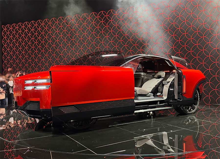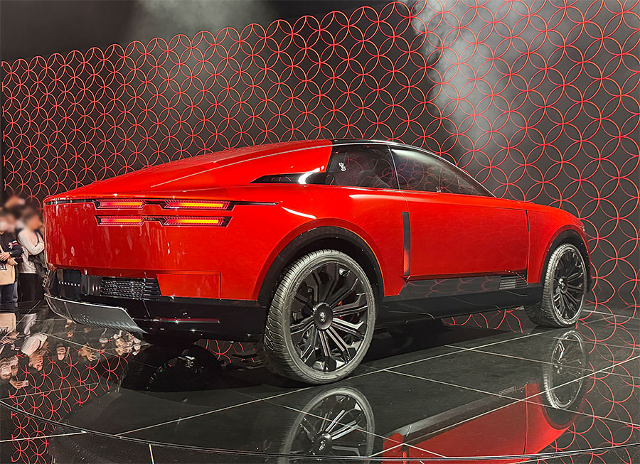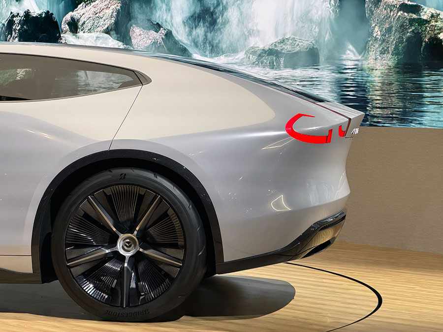 空力を考慮しているのかリアにかけて絞り込まれたデザインで、アリアをちょん切ったような感じ。