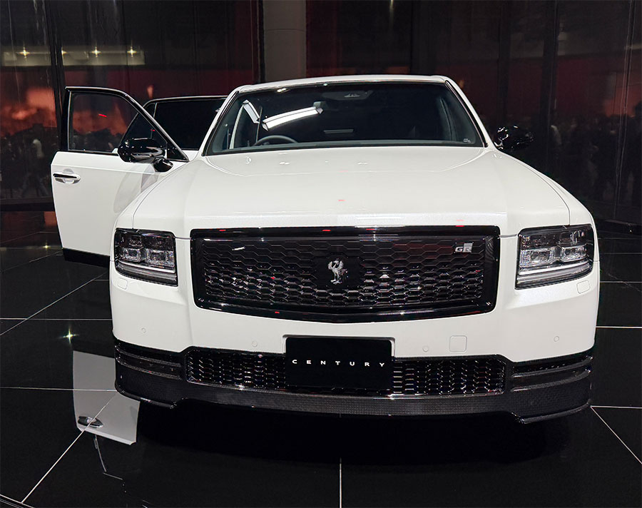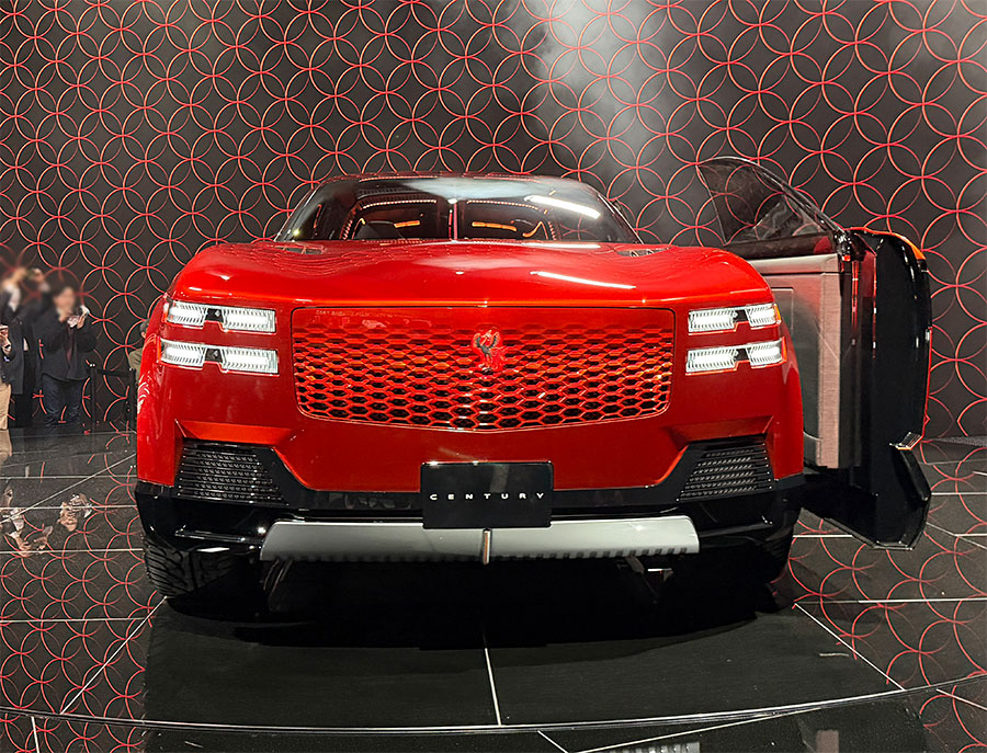 SUV化されたセンチュリーは、上下に分割された4眼ライトで威圧感ありあり。