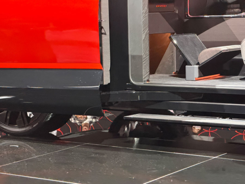 でっかいスライドドアをよく見ると、センチュリークーペと同じくボディ側にスライドレールがなく片持ちのようで。