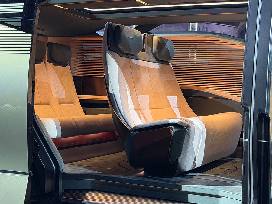 中のシートはボディーの威圧感に比べると軽めの印象で、コクヨが作ってそう。