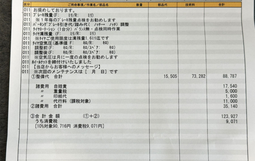 前回の車検で要らんなと思ったものも抜いてもらい、結局・・・