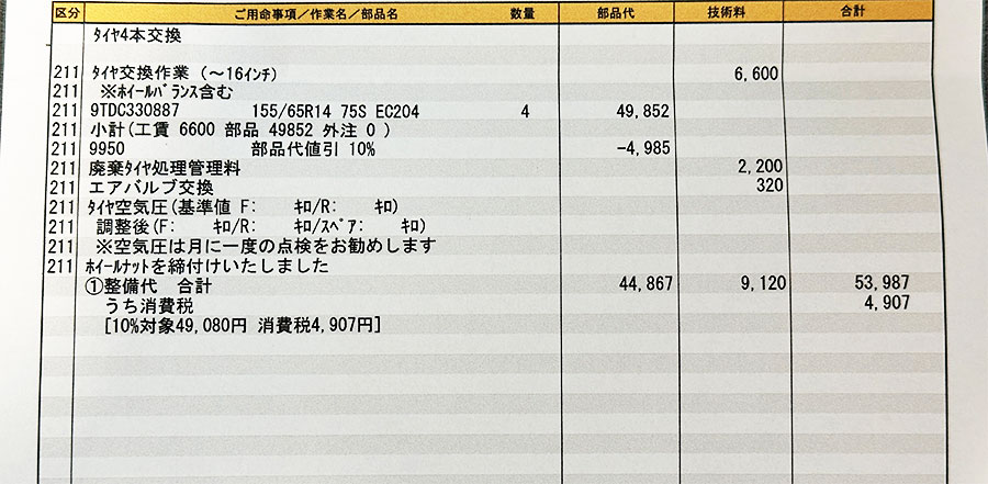155/65R14、4本で53,987円。