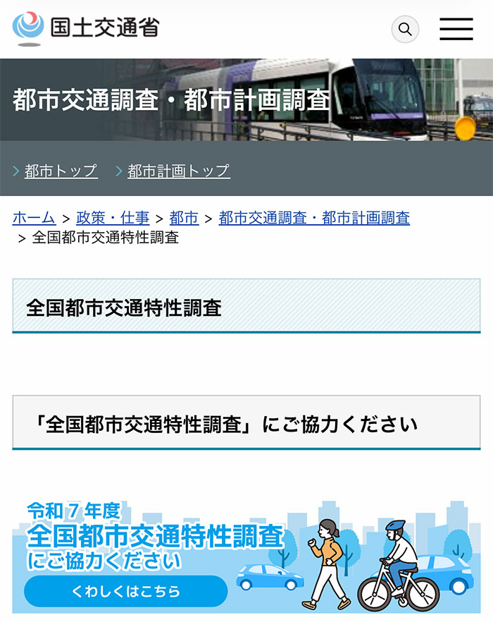 全国都市交通特性調査にご協力をお願いいたします。