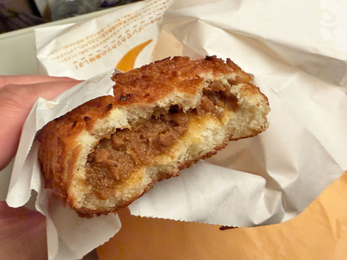 買うときに店で温めてもらい冷める前に食べると他では味わえないほどのうまさで、最近はこのカレーパンを買ってから新幹線に乗ることが多く、新・出張帰りの至福のひとときになってます。