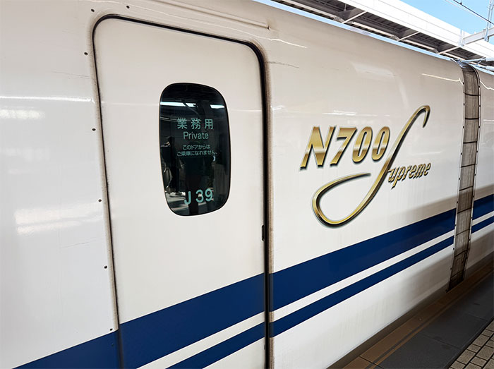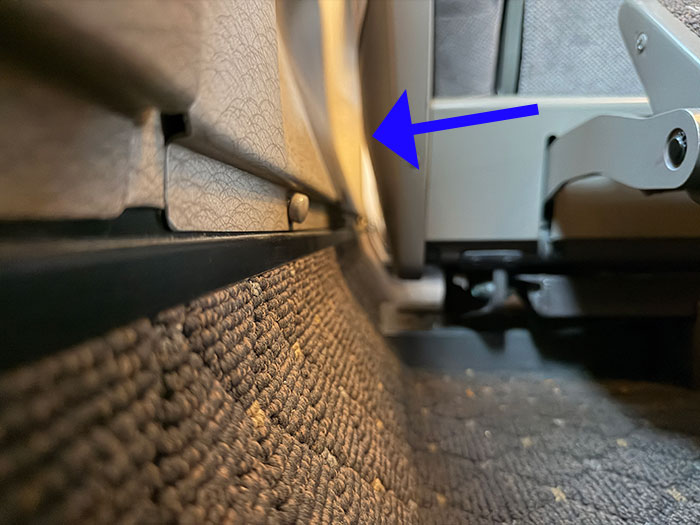 N700Aのパネルはカーペットとの境目までまっすぐ下がっていて、隅にカバンを置きやすい。