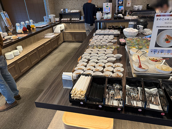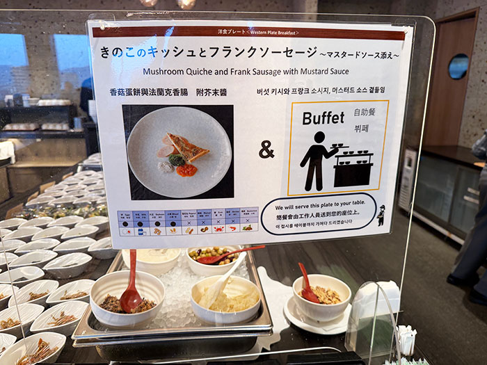 ビュッフェ形式の朝食会場も最上階のビューラウンジで、品数は多め。
