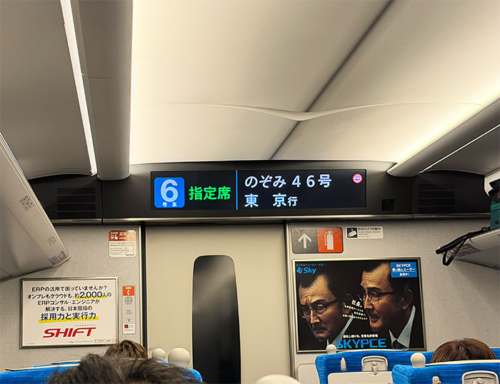 のぞみ46号も普通車は混んでおり、窓側席は取れず通路側に。