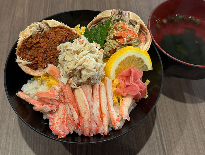 店に着いたら、カニを買う前に恒例のセコガニ丼を食べます。