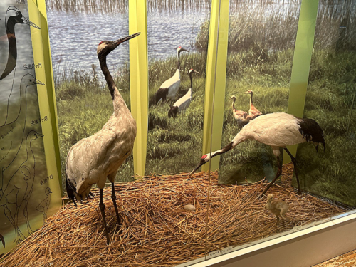 タンチョウの営巣や子育てを再現した様子。すんごいリアルなタンチョウでビックリ!