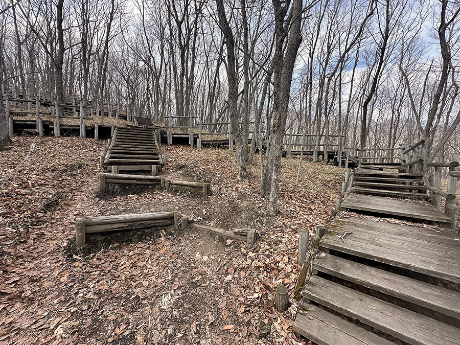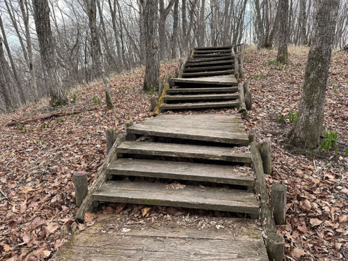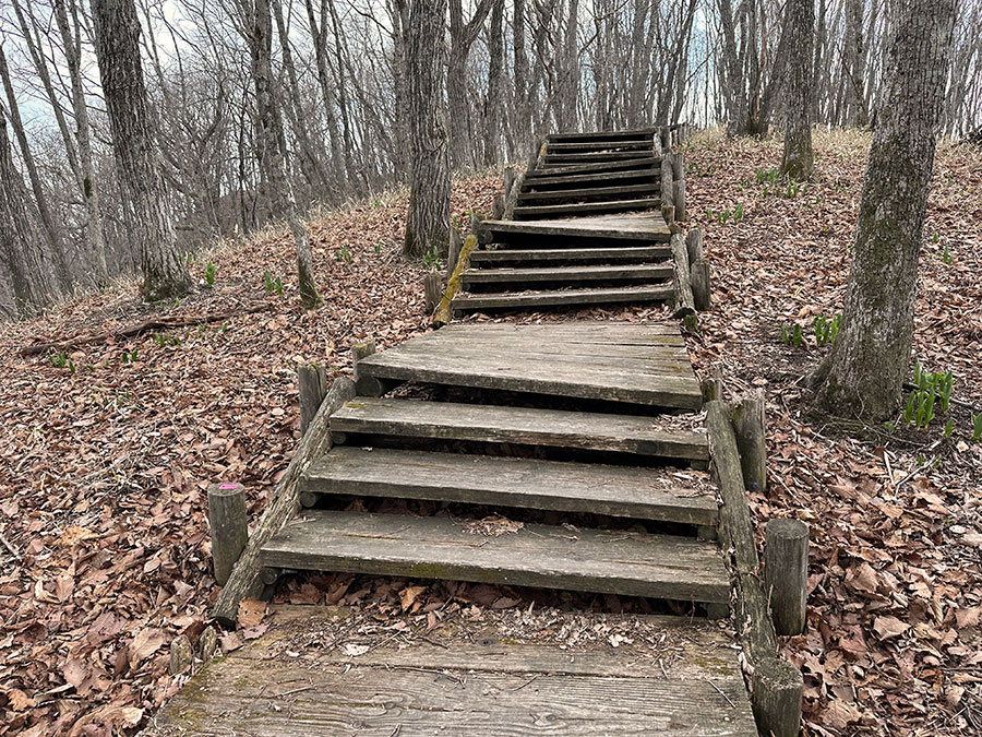 踏面が浮いてグラグラな階段はアップダウンもあり、歩きにくくなってくる。