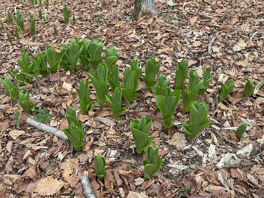 ふと遊歩道の脇を見ると、枯葉の中から春の気配も。