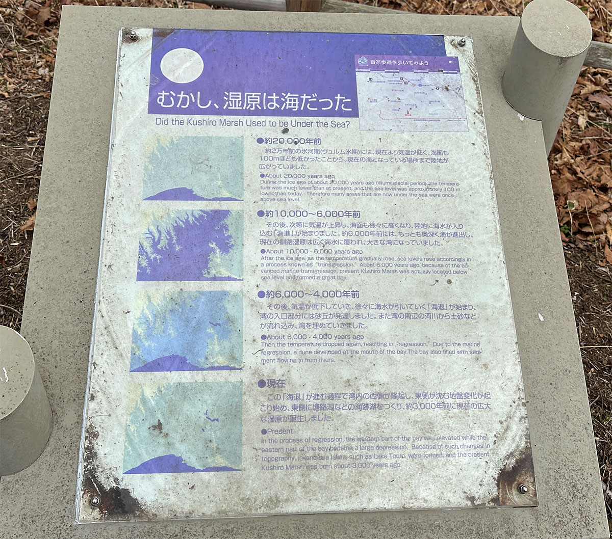 ここでは、釧路湿原は昔は海だった話が。