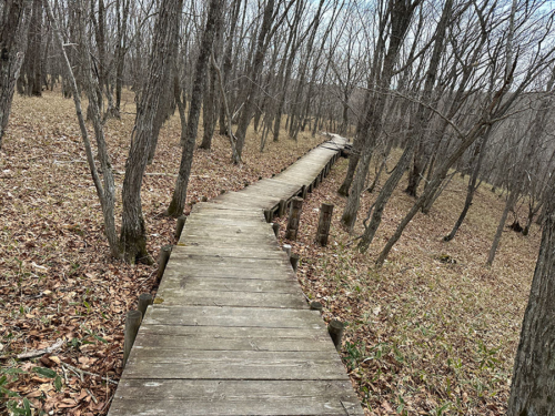 展望台から森の中の遊歩道を歩いていくと、さらに近くから湿原を眺められるそうなので行ってみることに。