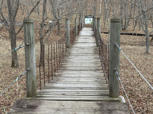 この広場の先には、なぜか吊り橋が。