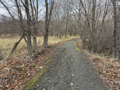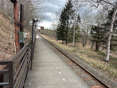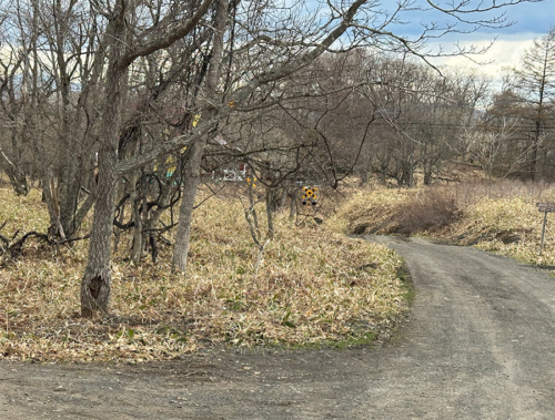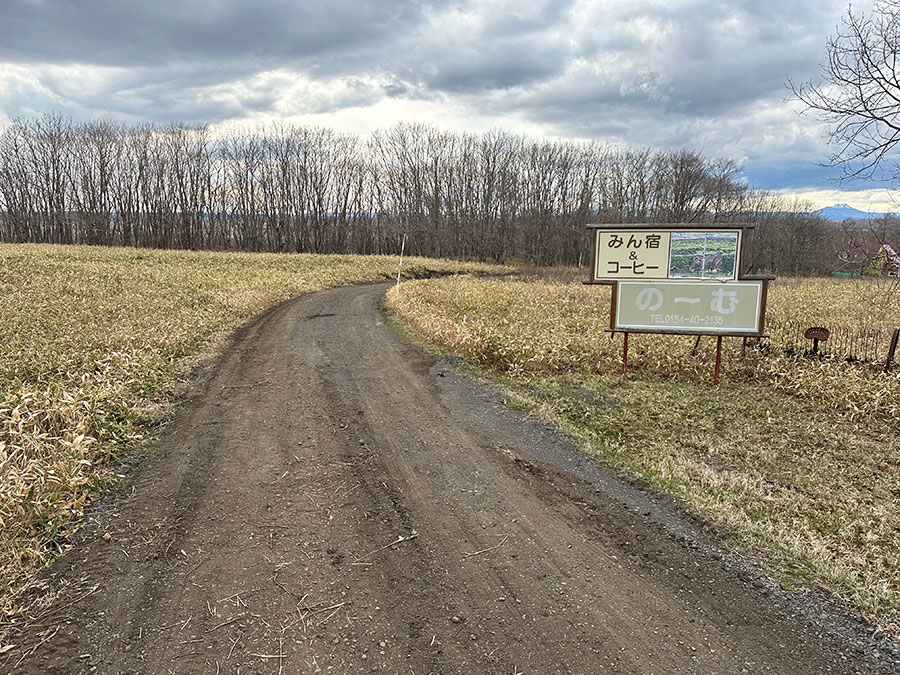 車を止めた細岡駐車場から駅の方向へ行くには、「の~む」の看板のある道を進むのですが、未舗装の土の道なので、なんだか他人の牧場へ迷い込んだような感覚。