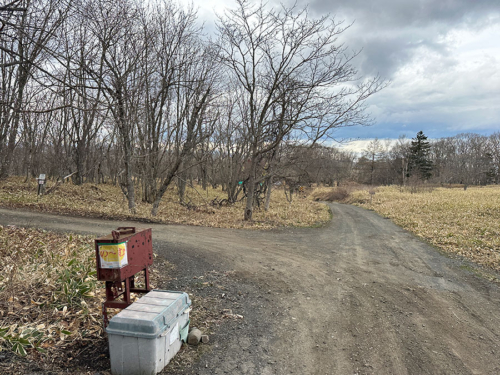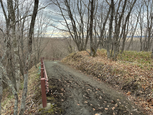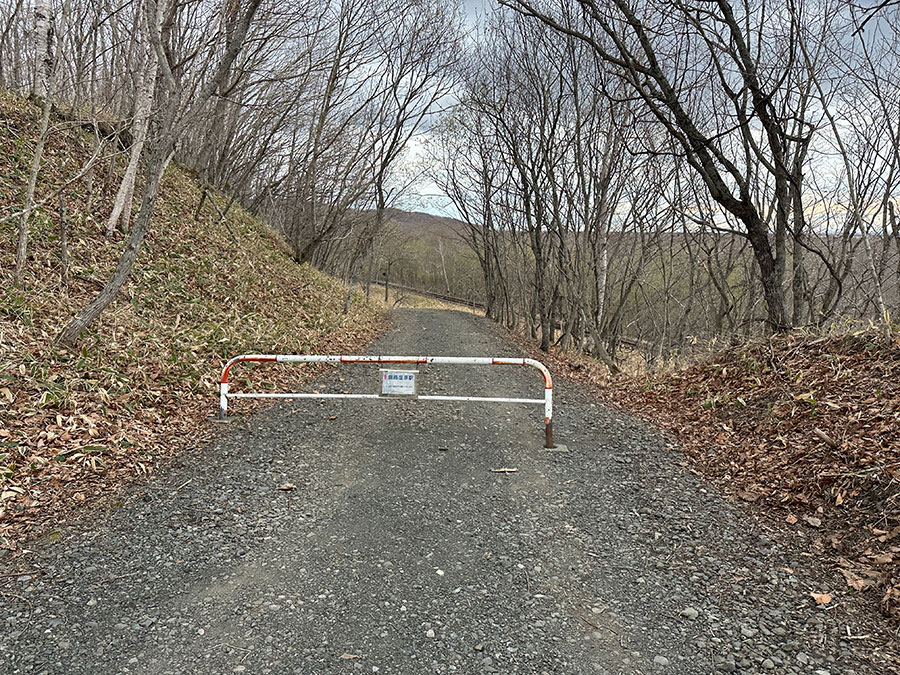 分岐を左に曲がると車止めの柵があり、ここから先は車では行けません。