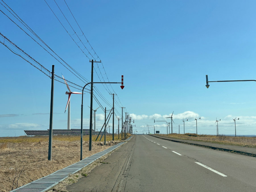 根室半島を走っていると、風が強い地域ということもあり風力発電のプロペラがたくさん回っていますが・・・
