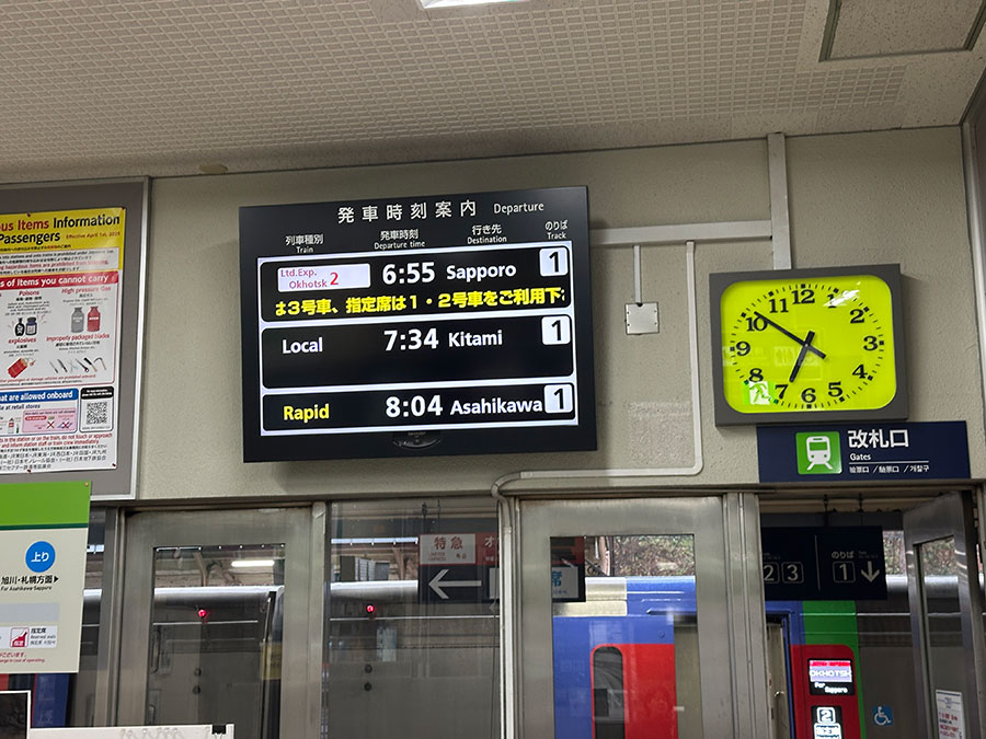 まずは網走から6:55発 特急オホーツク2号で旭川へ。