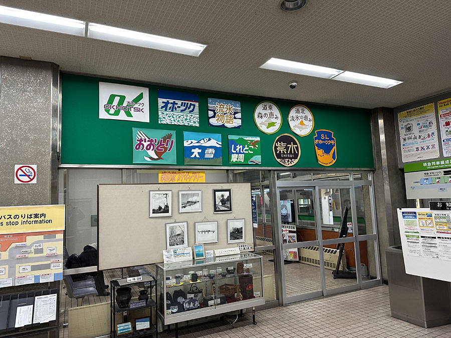駅舎内には、網走駅にゆかりのある列車のヘッドマークが飾られており、思わず見入ってしまう。