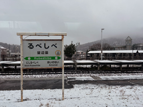 現在、日本で唯一「る」ではじまる駅の留辺蘂(るべしべ)。