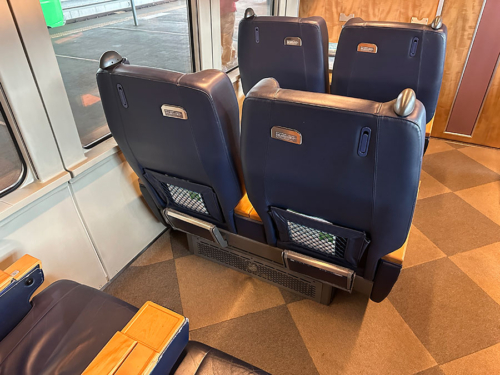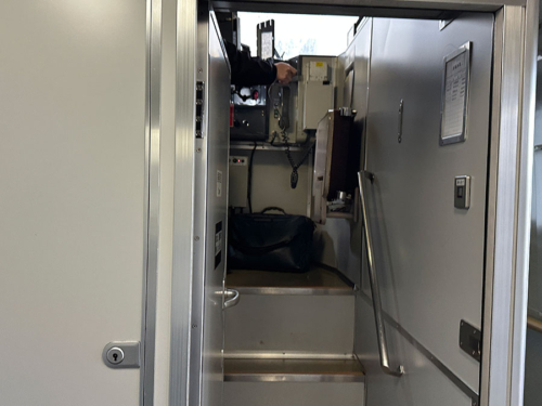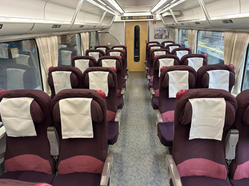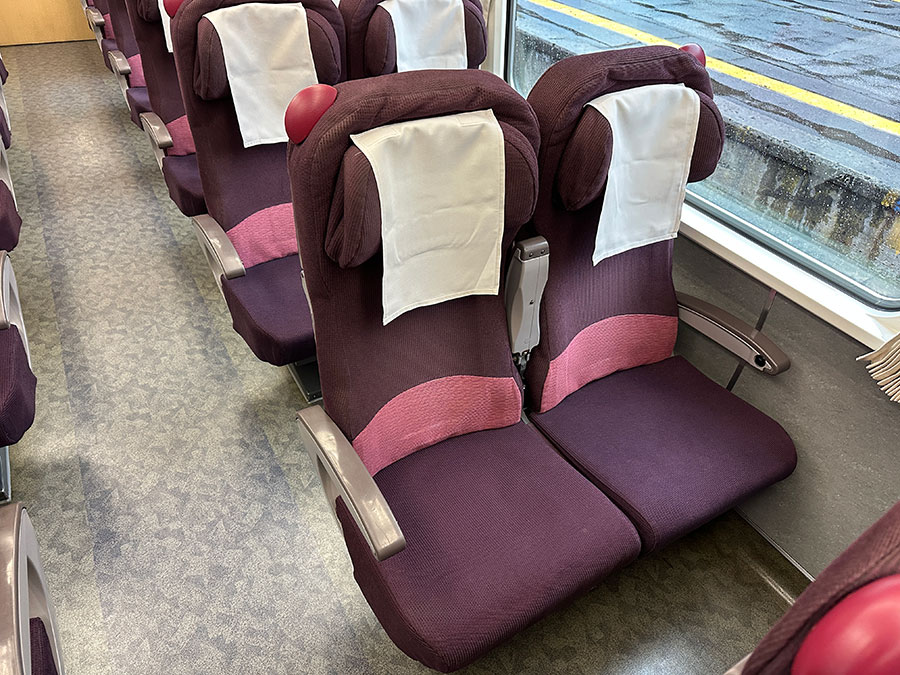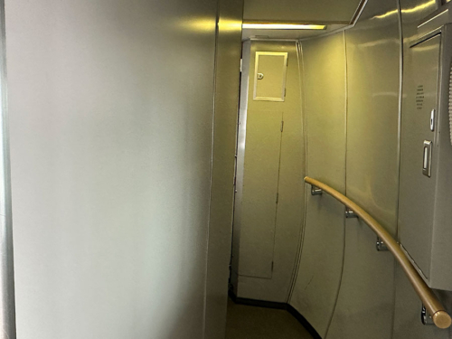 乗降扉は外開きのプラグ式で、ドア横の行先と号車は白が出せるLED。
