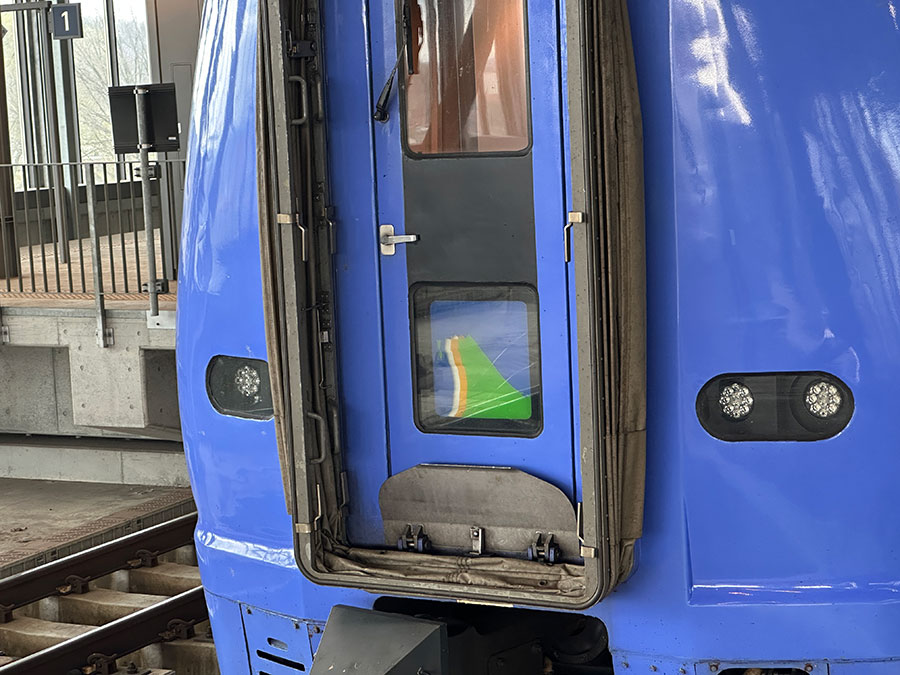 デッキへ出てみると、運転台のドアが開いていて方向転換の作業中。