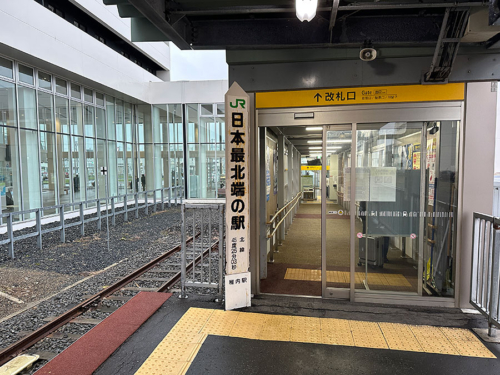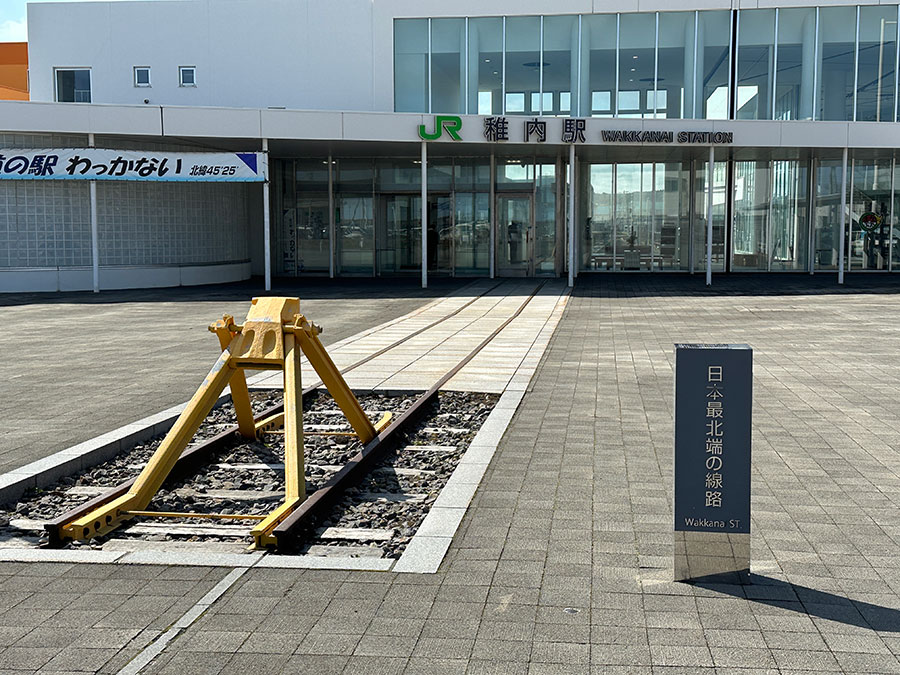 稚内駅の駅舎を出ると「日本最北端の線路」の車止めが。