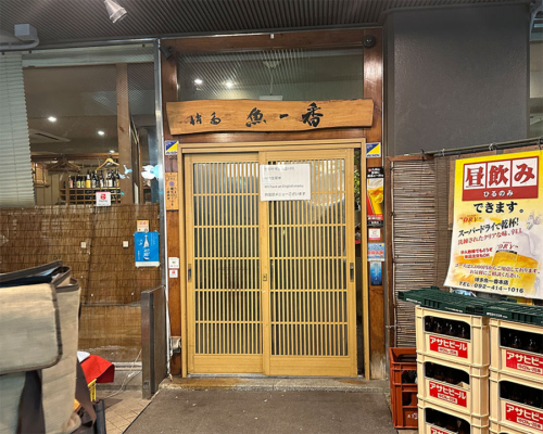 博多駅筑紫口から徒歩5分ほど、合同庁舎前交差点の角にある居酒屋『博多 魚一番』へ。 店内はサラリーマン達で大賑わい(←お察しください)。